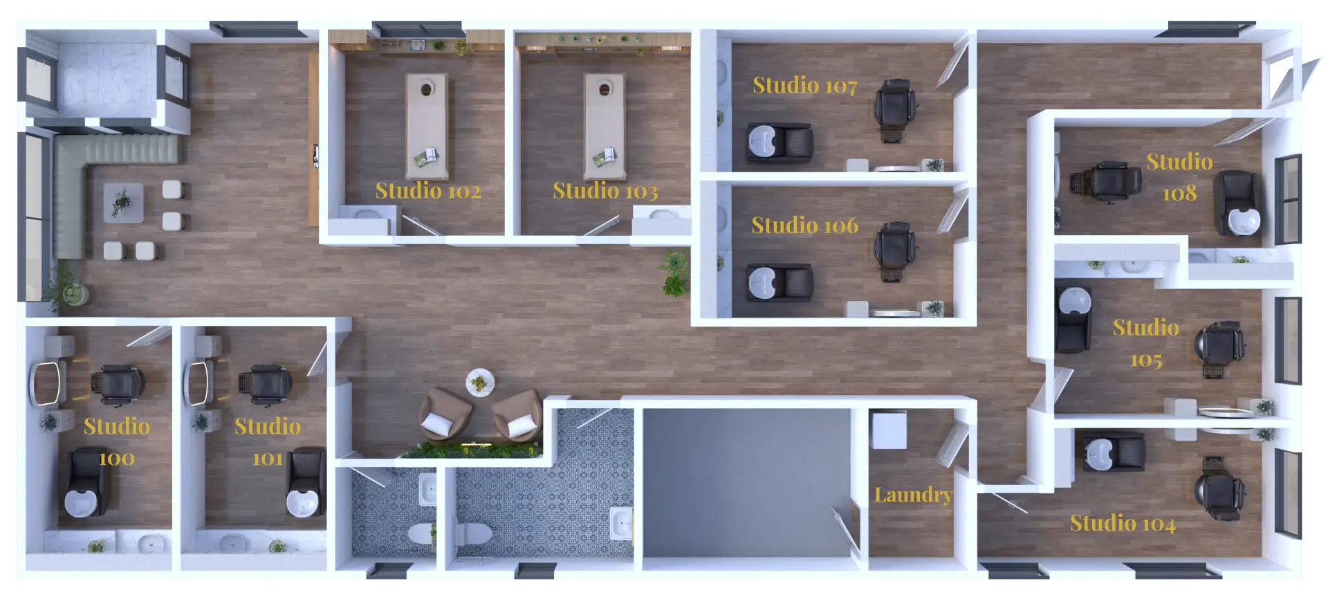 Step into your private salon suite and enjoy a workspace designed for comfort, style, and success.